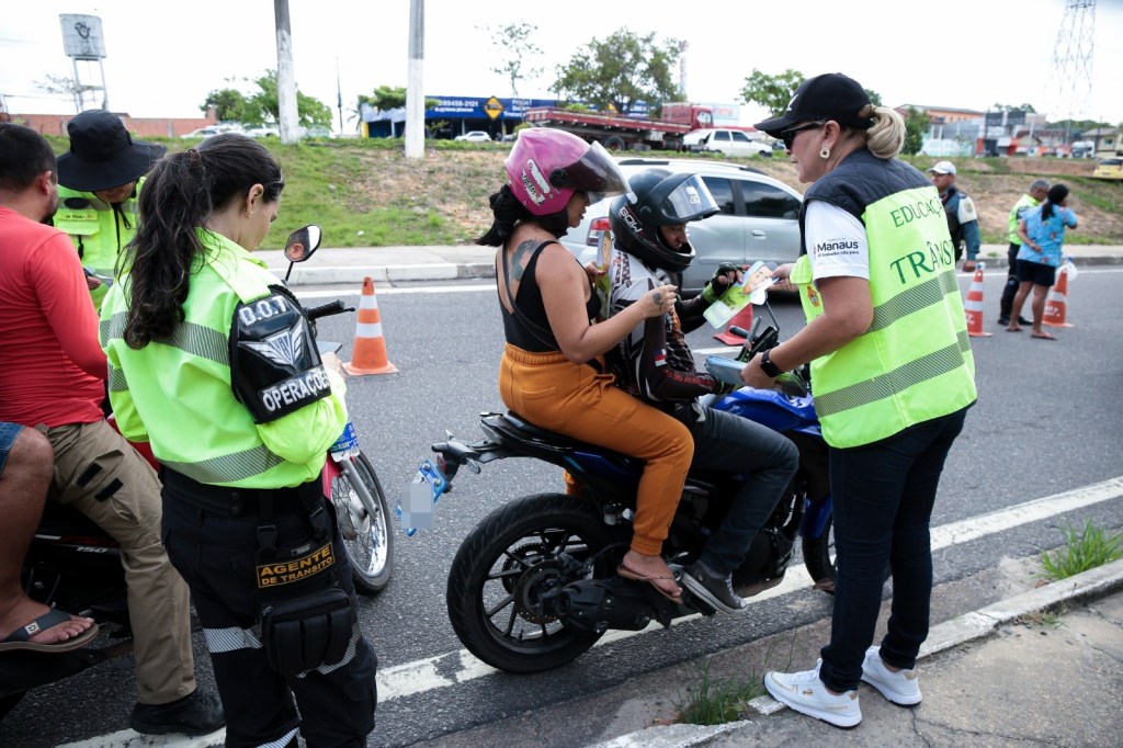 Motoristas e motociclistas que trafegavam pela avenida das Torres, na manhã desta terça-feira, 7 de janeiro, foram abordados durante uma ação integrada da Prefeitura de Manaus, por meio do Instituto Municipal de Mobilidade Urbana (IMMU). A operação uniu fiscalização e educação no trânsito, com orientações de segurança e distribuição de materiais informativos para prevenção de acidentes.